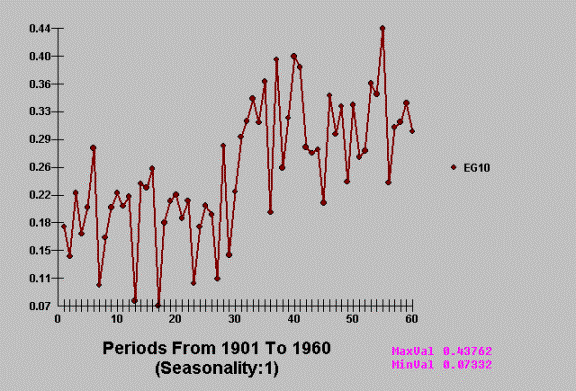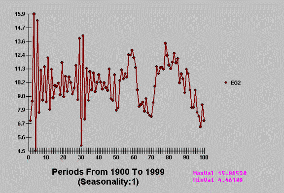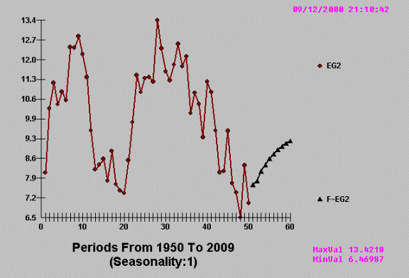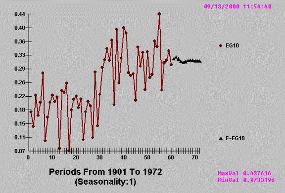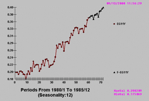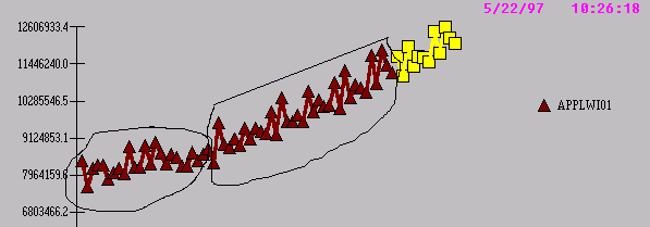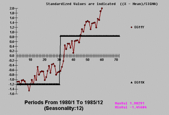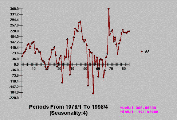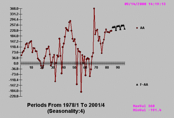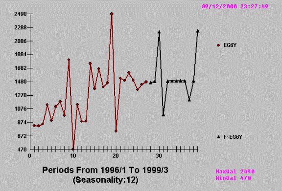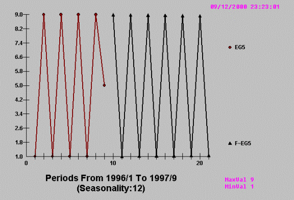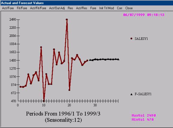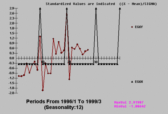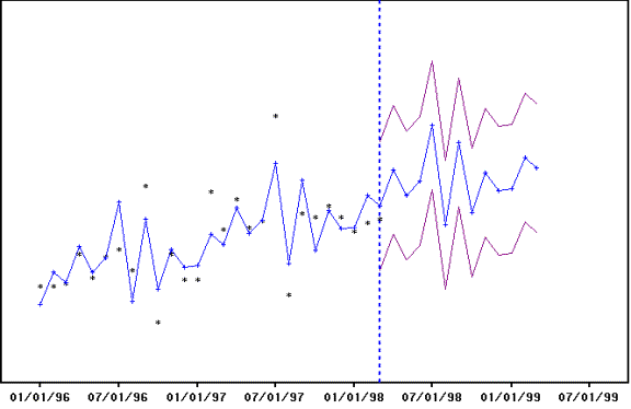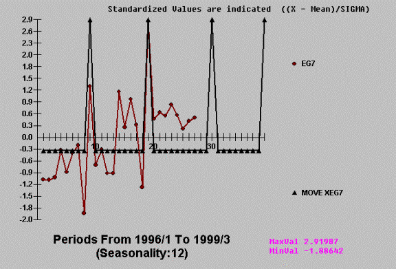 5 at time period 1996/9. What to do ! How to forecast ? How to detect an Inlier